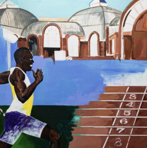 Lassana Sarre, “Courir pour être curieux” – 2022 – acrylique sur toile – 200 x 200 cm – Galerie Polaris © ADAGP, Paris 2025