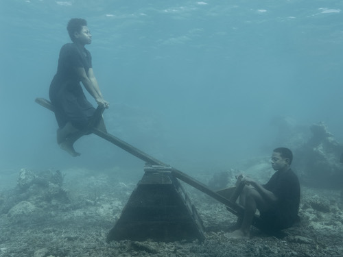 Onnie and Keanan on Seesaw, Fiji, 2023 © Nick Brandt