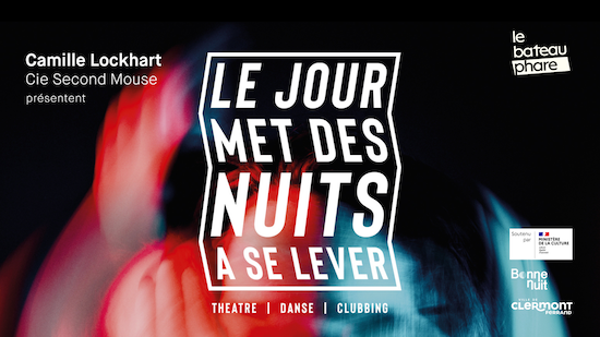 Le jour met des nuits à se lever est un projet pluridisciplinaire (théâtre, danse, musique live), hors les murs (club, hangar et autres lieux non dédiés à la représentation théâtrale) avec pour thématique “la fête” qui met à l’honneur les musiques électroniques et la culture club dans toute sa diversité. Une expérience in situ, participative pour ceux qui le souhaitent, dans une nuit théâtrale et électronique. Une soirée en deux temps qui commence par la pièce de théâtre (before) suivi d’une soirée avec DJs et/ou lives (after).