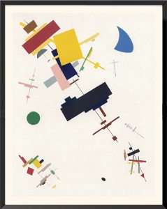 Pourquoi le mot “suprématisme” ? Parce que les artistes de ce courant se fixent en principe sur la suprématie d’un sentiment qui soit pur, d’une forme travaillée dans sa plus simple représentation. Les oeuvres sont ainsi dégagées de toute signification qui serait rationnelle, irrationnelle, symboliques etc… La vision surnaturelle de ce courant est très ressemblante à celle du peintre auquel Malevitch s’est mesuré tout au long de sa carrière : Kandinsky.