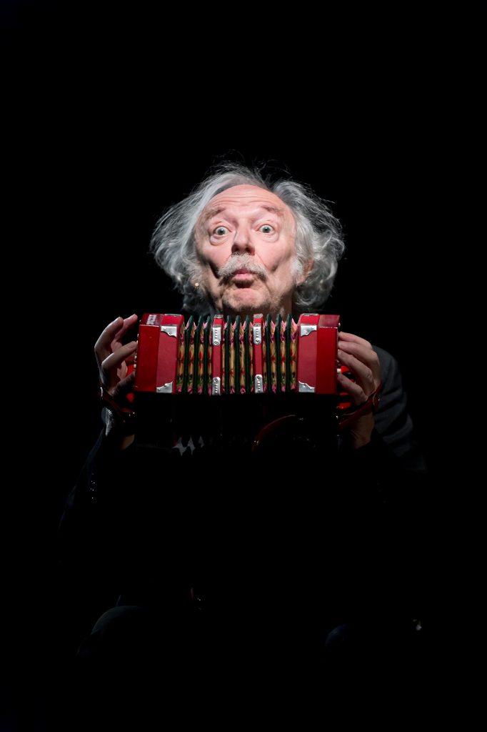 Quand on est clown, acteur, directeur du Théâtre du Prato à Lille, et qu’on a roulé sa bosse dans tous les théâtres et sur toutes les routes de France, qu’on a tourné au cinéma et qu’on est poète à ses heures, un plateau vide, un concertina dans les mains et juste une chaise d’école suffisent à planter un décor de rêve. Gilles Defacque plante son regard bleu dans les étoiles, les yeux écarquillés vers nous, et nous délivre ses rêves d’enfant, sa jeunesse dans les corons du Nord, ses angoisses d’acteur. Eva Vallejo le met en scène délicatement, l’accompagne dans son parcours de clown inquiet et nostalgique, lui qui fait du vide son monde, et son complice de scène Bruno Soulier, musicien aguerri et poète de la note, sculpte l’espace avec son piano déchaîné, rock ou blues, mélancolique ou tonique, pour border son chemin. Un voyage d’artiste qui s’invente des mondes pour nous y faire pénétrer, rêver, nous perdre, qui est le premier opus des Portraits d’acteur proposés par la compagnie L’Interlude.