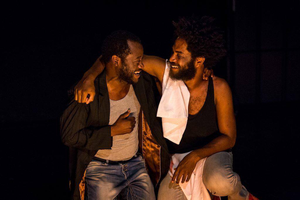 Quelle astucieuse idée de transposer la tragédie de Sénèque, Thyeste, en la modifiant bien sûr pour adapter l’histoire à notre société actuelle ! Le tout jeune Hakim Bah se saisit de la haine entre les deux frères, Thyeste et Atrée, face à un destin glorieux et pris au piège par un amour interdit, pour évoquer la violence masculine aujourd’hui, celle infligée aux femmes, le machisme et la manipulation des groupes humains auxquels on fait miroiter un Eldorado scintillant. Le metteur en scène Frédéric Fisbach monte la pièce avec six jeunes comédiens, trois garçons et trois filles, qui réalisent un remarquable travail choral. La scénographie sommaire, un paravent, un banc, des projecteurs, une table, leur permet de jouer le texte frontalement ou dissimulés, de sorte que l’on ne voit pas les scènes trop violentes. Il y a un mélange très baroque de styles d’écriture dans le texte, qui va du boulevard au documentaire, de la tragédie à la peinture sociale, qui provoque la surprise du spectateur, d’autant que la pièce est fragmentée parfois par les didascalies. Les répliques sont savoureuses, crues, burlesques, réalistes ou cruelles, et les comédiens offrent au public un miroir limpide mais non complaisant de nos comportements prédateurs.