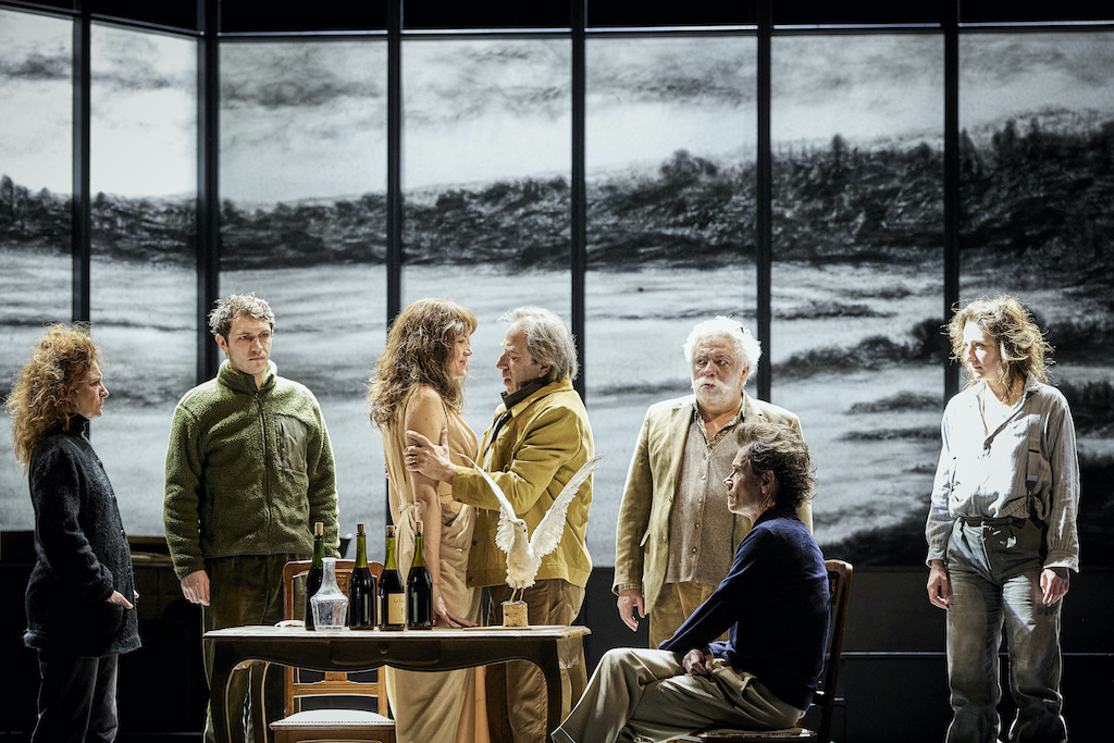 Pour interpréter de tels personnages, explosifs, tragiques et comiques à la fois, les acteurs de la Comédie Française sont au premier rang. Marina Hands en star ultime, insupportable, désirable et tapageuse, Loïc Corbery en écrivain-pêcheur cynique, séducteur et insatisfait, Julien Frison et Adeline d’Hermy, jeunes adultes, nerveux comme des papillons qui se cogneraient aux parois de l’ancien monde. Julie Sicard (Macha), Bakary Sangaré (Sorine), Nicolas Lormeau (Sorine), Birane Ba (le maître d’école) et Dominique Parent (le régisseur de Sorine) complètent la distribution, à laquelle viennent s’adjoindre deux jeunes comédiens de l’Académie, Edouard Blairon et Blanche Sottou. Dans des décors au réalisme théâtral, qui nous rappellent sans cesse l’artifice de la scène, toile naturaliste aux couleurs enfantines, vision photographique sépia du lac qui annonce le deuil, les comédiens ne s’économisent pas, quitte à en faire souvent trop. Cette démesure vocale dans le pathos peut s’avérer fatigante, comme elle permet aussi aux jeunes de pouvoir d’identifier à des personnages qui leur ressemblent. Reste un spectacle haut en passions qui défend la démesure et l’outrance, l’émotion et la liberté, expression de tous les registres comiques et tragiques. Agacé ou conquis, fatigué ou subjugué, c’est au public nombreux de choisir par où et comment il sera séduit.