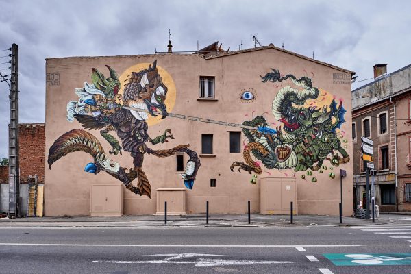 Proche du mouvement Low Brow, il se passionne pour le concept de monstre et les mythologies du monde entier. 100TAUR pose un regard si bienveillant sur les figures mythologiques qu’il parvient à les rendre attachantes. Il se réapproprie les tableaux des grands maîtres de la peinture (J.Bosch, Ingres, G.Doré…), sur les toiles comme sur les murs, en puisant dans la littérature fantastique (Poe, Lovecraft), les comics, les ouvrages d’anatomie, de taxidermie, les films de série B et dans son amour pour la nature, la pêche et le monde marin. Derrière chacune de ses créations, une histoire attend d’être découverte.