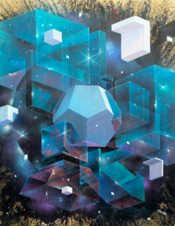 Le concept mathématique de Platon associe chaque élément naturel à un solide rationnel. Ainsi, l’air est un octaèdre, l’eau est un icosaèdre, la terre est un cube, le feu, un tétraèdre et le cinquième élément, l’univers, est symbolisé par un Dodécaèdre.