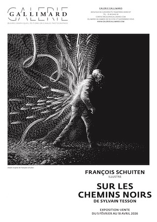 À l’occasion de la parution du tirage de tête de l’ouvrage “Sur les chemins noirs” de Sylvain Tesson illustré par François Schuiten, la Galerie Gallimard présente, jusqu’au 18 avril, une exposition des dessins originaux de François Schuiten réalisés avec la technique de la carte à gratter.