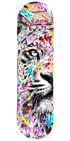 Véritable support de création pour les artistes urbains qui diffère de la toile par sa forme atypique et sa matière en bois, la planche de skateboard est un élément décoratif apprécié par les amateurs d’art pour son originalité. Réalisés à la bombe aérosol, l’acrylique, le pochoir ou encore à l’aérographe, chaque skateboard de la collection est unique et il n’en existe donc qu’un seul exemplaire par artiste. Les artistes ayant d’ailleurs chacun leur propre style, il y en a pour tous les goûts, de l’art abstrait au figuratif, en passant par le pop art, l’illustration ou encore le wildstyle…