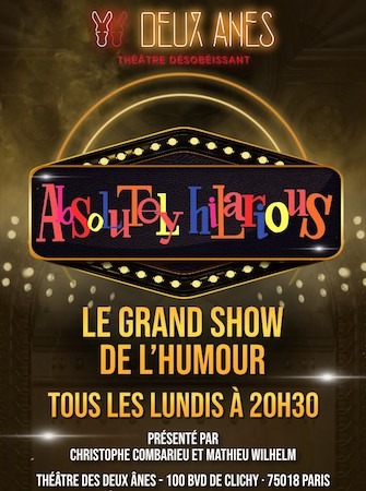 Tous les lundis, le Théâtre des Deux Ânes accueille ce qu’il se fait de mieux en ce moment sur la scène parisienne de l’humour ! La 7e saison d’Absolutely Hilarious débute le 7 octobre !