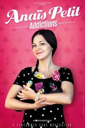 Dans ce nouveau spectacle, la comédienne et imitatrice Anaïs Petit a imaginé quelles pourraient être les addictions de personnalités célèbres. Venez découvrir les passions secrètes et honteuses de Vanessa Paradis, Catherine Frot, Chantal Ladesou, Geneviève de Fontenay, Louane, France Gall et quelques autres. Elle vous présente également une galerie d’addicts anonymes. De la DRH accro au malheur des autres à l’inconditionnelle de la chirurgie inesthétique en passant par ” Mamie Goulue “, chacune d’entre elles viendra vous raconter son histoire à travers des sketchs irrévérencieux et décalés. Le tout parsemé de quelques chansons au piano.