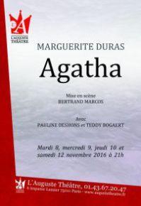 Agatha De Marguerite Duras Mise en scène de Bertrand Marcos Avec Pauline Deshons et Teddy Bogeart Mardi 8 novembre 2016 à 21h Réservations au 01 43 67 20 47 ou par mail : augustetheatre@gmail.com L’Auguste Théâtre |