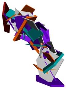L’entre-deux est au coeur de son travail. Des oeuvres telles « Démolir-Reconstruire », aux croisements de la sculpture, de l’architecture et du design, jouent sur des équilibres précaires qui mettent en tension la stabilité des éléments et leur troublante fragilité. L’artiste déconstruit pour reconstruire. Chaque dessin produit participe d’ailleurs de ce travail in progress, existant à la fois comme pièce autonome et partie incommutable de la sculpture.