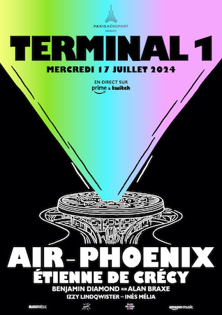 Paris-CDG, toit du monde l’espace d’une soirée le 17 juillet, pour faire rayonner le meilleur de la French Touch. Avec au programme : AIR, Phoenix, Etienne de Crécy, Benjamin Diamond ,B2B, Alan Braxe, Inès Mélia, Izzy Lindqwister.