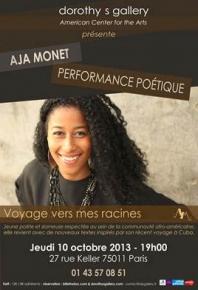 Aja Monet présente de nouveaux textes inspirés par son récent voyage à Cuba. Invitée à Cuba par un festival, elle a saisi l’opportunité pour explorer ses racines, débutant à Santiago de Cuba et Guantanamo.