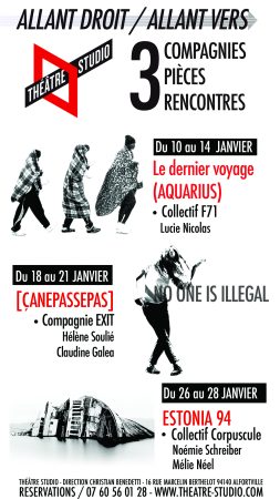 Le Théâtre-Studio vous accueille en janvier 2023 avec un Rendez-Vous sous le signe du théâtre documentaire : Allant Droit // Allant Vers. Au programme, trois compagnies présenteront trois spectacles différents, et aborderont trois thématiques durant leur réunion hebdomadaire.