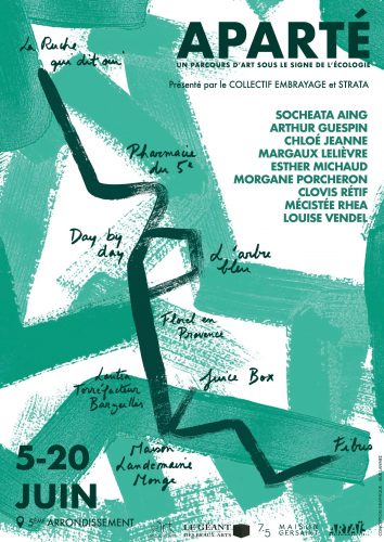 Le Collective Embrayage, association qui met en avant la jeune création artistique grâce à des expositions dans des lieux atypiques, s’associe avec STRATA, agence dédiée à l’art contemporain environnemental, pour la 2ème édition du parcours artistique APARTÉ.
