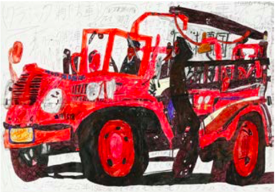 Takumi MATSUHASHI, Camion de papier, 2014, stylo bille, encre, crayon, sur papier, 41×60 cm – Collection de l’artiste