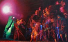 Ce qui pourrait autrement rester dans le champ du reportage, du carnet de voyage ou de l’album-souvenir acquiert, dans ce patient report exécuté à la main, une charge esthétique et poétique indéniable : si l’œil est ici évidemment photographique – en témoignent les nombreuses indications de mouvements rapides, impulsifs, suspendus, mais aussi les cadrages, les angles de vue, les regards, les postures, voire les situations elles-mêmes qui comme appellent la photographie – , les effets recherchés par le peintre ne vont nullement dans le sens de la précision documentaire. Dans ce dernier ensemble en date, les fonds souvent s’estompent, perdus dans le lointain ou dans l’obscurité ; ou bien ils deviennent compositions abstraites, assemblages de formes et de couleurs. Et le flou qu’Audrey Nervi a toujours recherché pour fondre les figures dans l’espace qui les accueille de se propager à l’ensemble des œuvres qui ainsi parfois atteignent, aussi surprenant que cela puisse paraître, à une forme d’atomisation qui n’est pas sans évoquer telles facettes de l’impressionnisme ou du néo-impressionnisme. Parfois, l’on pourrait même se croire devant des pastels ou des fusains, tant le peintre a mis du grain dans le traitement qu’elle fait subir aux images.