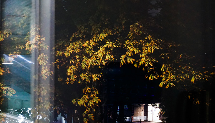 Toujours en quête de résonance entre son sujet d’étude et son environnement proche, l’artiste a récolté au petit matin des feuilles de marronniers fraîchement tombées durant cette nuit d’automne devant l’entrée du musée. De cette récolte, elle a tiré le phénol lui permettant de révéler ses photographies, de manière non-toxique. De ces images, le récit d’un pli prend forme dans une rencontre avec les éléments, le long des voies de la Table de Peutinger (Chapitre 1).