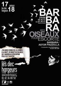 Barbara, mes oiseaux pour escorte – Théâtre Les déchargeurs De et par Laurence Sur des textes de Barbara et des musiques de Barbara et Astor Piazzola Avec Mardi,Mercredi,Jeudi, Vendredi, Samedi à 21h30 Du 10 au 21 octobre 2017 Tarifs : 10€ à 26€ Réservation en ligne ou par tél. au 01 42 36 00 50 Durée : 1h Les Déchargeurs |
