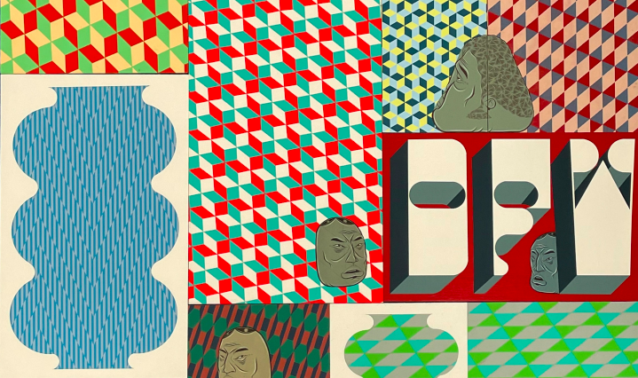 Barry McGee, Untitled, 2021. Acrylic, gouache and aerosol on panel ; 16 elements, 182.2 x 106 cm | 71 3/4 x 41 3/4 inch. Painting. Courtesy of the artist, Perrotin, and Ratio 3, San Francisco.