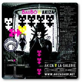 L’artiste BauBô (qui tire son nom de la déesse grecque des rires obscènes) confronte son travail sur la mise en valeur du genre Féminin à celui de la poupée Akiza, graphique rock, fétichiste et tout de noir et blanc, pour la huitième exposition chez Akiza la galerie. Une rencontre artistique, graphique, Street Art autour de deux visions complémentaires et parfois antithétiques du Féminin.
