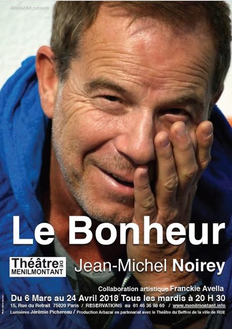 Acteur-auteur, Jean-Michel Noirey commence son voyage par l’histoire d’un échouage dans une baie du bout du monde. Corps et âme ensablés comme une grande barque de pêcheur. Une barque chargée de morceaux de vie pris dans des filets devenus trop lourds à porter … Face à l’horizon, « Il faut hisser la voile. Frapper les trois coups « Sauver sa vie, gagner un sursis ». L’acteur se fait auteur de ces mots poussés dans le vide, de ces paroles qui s’emmêlent dans les vagues. Des cris lancés dans la nuit, il tisse des toiles tendues vers les seuls bras qui comptent, ceux du public. Ecrire, écrire encore et encore des mots-à-mots, des mots-paroles, des mots-palabres, des mots pour maux … A la recherche du bonheur, Jean-Michel Noirey se joue avec plaisir et dérision des proverbes et des dictons. Il met en scène avec humour la vie au quotidien … Un geste, un sourire, un baiser retrouvé, un salut discret, une main tendue. Petite poussée vers l’espoir. Un coin de rideau se soulève … Jouer ! Jouer ! à en perdre haleine …