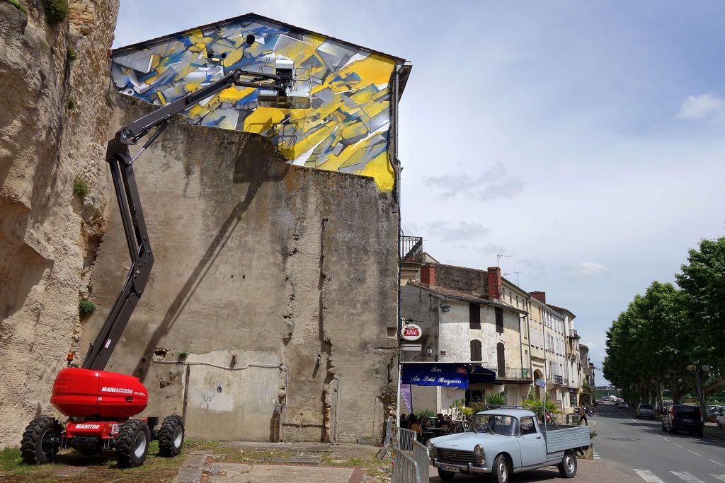 Entre peintures murales et travail en atelier, il développe une démarche de plus en plus personnelle, résolument axée sur l’abstraction. Il s’affranchit complètement des codes du lettrage, le décortique et n’en garde que l’essentiel : la ligne.