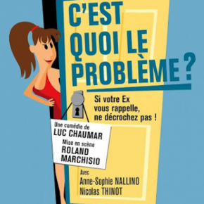 C’est quoi le problème ? De Luc Chaumar Mise en scène de Roland Marchisio Avec Anne-Sophie Nallino et Nicolas Thinot Jusqu’au 28 mai 2016 Tarifs : de 10,99 à 22,99 € Théâtre Mélo d’Amélie M° Opéra |