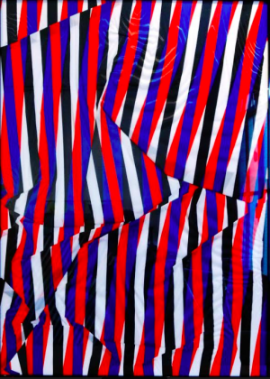 L’organisation linéaire et plane laisse place aux vibrations et distorsions au fil de la fixation du motif sur la rétine du spectateur.