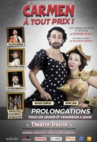 Carmen à tout prix Auteur : Sophie Sara Artistes : Mathieu Semperé, Sophie Sara Metteur en scène : Manon Savary Du 1 octobre 2015 au 25 février 2016 à 21h30 Durée : 1h30 Théâtre Trévise |