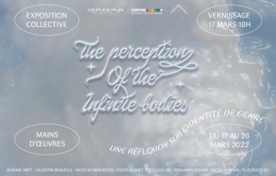 Présentation : “L’exposition The perception of the infinite bodies propose une réflexion sur l’identité de genre et sa représentation à travers le corps et l’art. Le projet explore la diversité du spectre du genre et vise à donner de la visibilité à une communauté LGBTQI+ marginalisée et à des jeunes artistes queers concerné.es. Réunissant huit jeunes artistes travaillant sur différents médiums (oscillant entre photo, peinture, vidéo, 3D, installation, danse), iels nous partagent leur perception du genre et ouvrent un dialogue avec les spectateur.rices. Abordant transidentité, non-binarité, sexualité, féministe, affirmation de soi, elle pose la question : comment l’art aide-t-il les artistes et les spectateur.rices à concevoir la perception de leur propre identité de genre ?” Une exposition qui ouvre notre regard sur le corps et les identités humaines, une place libre à la création que l’on salue chaleureusement.