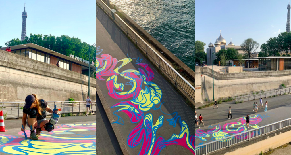Cinq artistes mettent en valeur nos plus vieux ponts de Paris en affichant l’héritage des Jeux Olympiques et Paralympiques 2024. Des procédés multiples ont été utilisés comme la projection, la fresque ou encore l’installation.