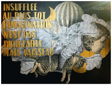 L’espace d’art urbain juché au-dessus de la librairie de Vincennes accueille l’artiste madame pour une performance exceptionnelle les 29 et 30 avril prochains. Inauguration de la fresque le 30 avril à partir de 18 heures en présence de l’artiste. À l’occasion de cette performance, un tirage en édition très limitée sera proposée à la vente à la librairie. Madame dédicacera aussi sa monographie généreuse et foisonnante, composée comme un jeu de pistes aux multiples entrées, parue aux éditions Hartpon. Un ouvrage qui permet de découvrir l’œuvre de l’artiste, mais aussi de comprendre son processus de création et d’entrer dans son imaginaire.