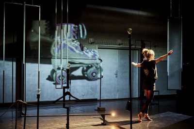 Tout commence toujours par une histoire d’amour est l’histoire intime, frontale, sans artifices de Mademoiselle R. À travers ses âges et sa mémoire, ses photos de famille, ses dessins d’enfant, elle tente de reconstituer une disparition, une absence : celle de l’homme au regard bleu turquin – son père – vivant toujours dans la maison aux volets rouges. Mademoiselle R. traverse cette pièce-puzzle en 28 mouvements, juchée sur des patins à roulettes essayant de tenir debout sans jamais tomber. Dans cette mobilité suspendue, elle entraîne le public à s’interroger sur le pouvoir d’un événement et la construction d’une vie. Une aventure humaine…