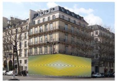 David Malek a symboliquement choisi deux langues pour intituler cette oeuvre imaginée au diapason des valeurs de Cerruti : moderne, internationale et ambitieuse. Réalisée sur 7 mètres de haut et 31 de long, elle nécessite plus de quarante couleurs différentes travaillées en 1/2 teintes, mais aussi en 1/4 de teintes, en partant de l’intérieur vers l’extérieur. La palette s’étend du jaune au gris foncé, incluant un effet métallisé imaginé par l’artiste. Il s’agit d’une oeuvre réalisée par David Malek en exclusivité pour la maison Cerruti.