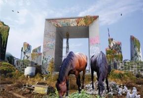 En visitant les temples d’Angkor, en pleine jungle, j’ai été fasciné par la façon dont la nature s’était réappropriée les lieux. A l’époque de leur splendeur, les temples devaient être, toute notion esthétique mise à part, impressionnants comme le sont aujourd’hui les gigantesques édifices des sièges sociaux des grandes entreprises où l’homme symbolise sa domination sur la nature en la repoussant loin et en imposant un univers minéral ultracontrôlé, codé, architecturé, urbanisé, souvent assez prétentieux. … Images et le travail numérique qui en découle… … Un long travail de détourage de photos de végétaux et d’animaux, de ciel, de nuages, d’un tas d’éléments que je vais photographier pour l’occasion ou que j’ai déjà dans mes archives ce qui me permet ensuite de composer l’image à la manière d’un peintre en jouant sur la lumière, l’échelle, la profondeur, la matière… L’ensemble nous plonge alors dans un surréalisme probable.
