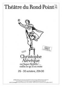 Christophe Alévêque plante ses banderilles dans l’échine du système. C’est sa façon à lui d’appuyer là où ça fait mal, histoire de percer les furoncles de cette si charmante société. Il aime pointer du doigt ce qui cloche dans ce monde sans pour autant verser dans le sérieux. Loin de se prendre pour un justicier masqué (il est incapable de respirer sous un masque), il endosse un déguisement de Super Rebelle, il balance quelques pincées de poil à gratter avant de s’écrouler tel un dandy blasé dans l’absurdité de nos vies.