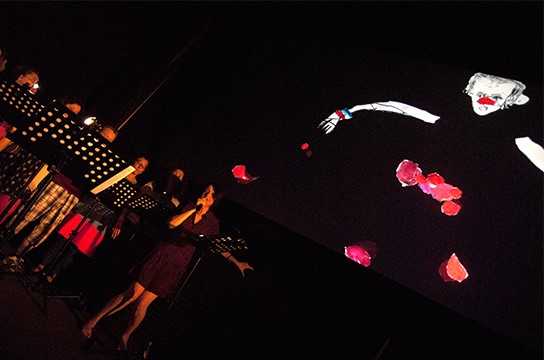 Au travers de peintures originales réinventées par l’artiste sur ordinateur et mises en mouvement, le film nous livre un regard ludique, magique poétique, coloré et neuf sur le cirque. Celui de notre mémoire collective, avec ses clowns en piste, ses équilibristes, ses contorsionnistes et autres curiosités. Les textes, la musique et les chants qui ont rythmé cette création sont joués en direct par la comédienne, Vincent Granger, guitariste, et Bertrand Binet, clarinettiste et percussionniste. La vidéaste Eva Grüber Lloret projette en live ses créations.
