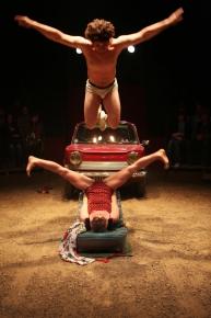 Tout en opposition et en harmonie, Victor et Kati réussissent à effacer la prouesse physique des portés acrobatiques pour laisser libre cours à des situations poétiques ou burlesques. Au-delà de la performance et presque sans un mot, ils racontent la fragilité d’une relation affective, la confiance, le souffle partagé.