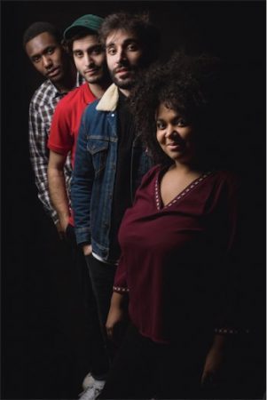 Clélya réunit dans ce projet une équipe d’amis musiciens virtuoses : Antonin Fresson à la guitare, Samuel F’hima à la contrebasse et Tilo Bertholo à la batterie.