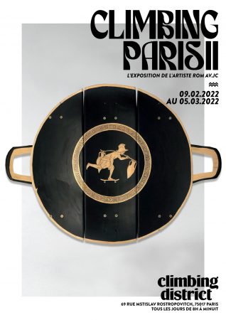 Sa démarche fait honneur aux morceaux de planches délaissés au profit de skates neufs. Rom av J.C vient restaurer ces reliquats, telles les jarres antiques qu’ils représentent. Climbing Parisii témoigne de la popularité de la pratique du skate et de l’escalade dès 522 av. J.-C. Dans ce solo show parisien, les planches cassées sont façonnées en forme de jarres, de vases et de coupes aux motifs gréco-romains. Ces précieux vestiges d’un pan oublié de l’histoire du skateboard, ont été mis à jour lors d’importantes fouilles archéologiques, réalisées dans la ville gauloise de Lutèce.