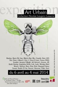 Collection d’Art Urbain Nicolas Laugero Lasserre Du 6 avril au 4 mai 2014 Avec Augustine Kofie, Banksy , Barry Mc Gee, Blek le Rat, Blu, Cryptik, Dem 189, Der, Dran, Gilbert1, Gris 1, Erica Il Cane, Futura 2000, Invader, Jacques Villeglé, Jef Aérosol, Jonone, JR, Keith Haring, Lek, Ludo, Monkey Bird, Momo, Nychos, Rero, Roa, Roti, Shepard Fairey, Sowat, Studio 21 bis, Swoon, Veroone, Vhils, Sevz et Roswitha Guillemin. Exposition du 6 avril au 4 mai 2014 Ouvert tous les jours de 14h à 19h sauf le lundi 21 avril Vernissage le 10 avril de 19h à 21h Performance de Monkey-Bird Crew la soirée du vernissage Entrée libre Galerie à L’Ecu de France |