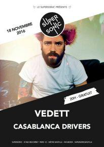 Concert de rock avec VedeTT et les Casablanca Drivers Avec VedeTT et les Casablanca Drivers Le vendredi 18 novembre 2016 à 20h Entrée libre Supersonic |