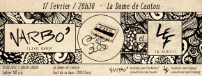 Concert Hip/hop avec Narbo’ et L.E.F. Avec Narbo’ et L.E.F. Le 17 février 2017 Tarif : 10€ La Dame de Canton |