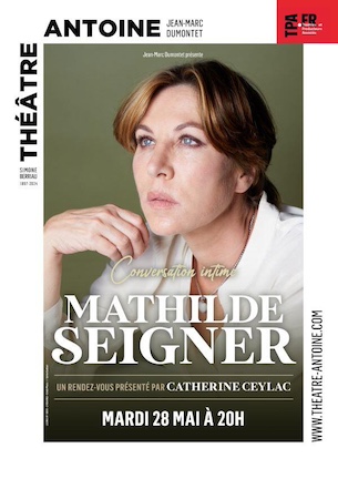 Venez à la rencontre de Mathilde Seigner, au Théâtre Antoine, dans une Conversation Intime avec Catherine Ceylac, célèbre journaliste et animatrice de radio-télévision. Le 28 mai prochain !