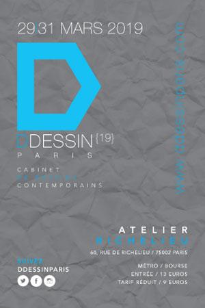 De nouveaux exposants et de nouvelles galeries font leur entrée sous les verrières de l’Atelier Richelieu : Art Gamma Gallery (Saint-Cloud), Fondation Duhem – La Pommeraie (Ellignies-SainteAnne, Belgique), Galerie Antonine Catzéflis (Paris), Double V Gallery (Marseille), Galerie Cyril Guernieri (Paris), Galerie Maria Lund (Paris), Galerie Pol Lemétais (Saint-Sever du Moustier), Galerie Polaris (Paris), Galerie Vallois (Paris), Sydney College of the Arts, University of Sydney (Sydney, Australie), Moving Art (Nice), Salon H (Paris), Galerie Ségolène Brossette (Paris), Sulger-Buel Gallery (Londres, Royaume-Uni) et plusieurs reviennent participer à DDESSINPARIS : Art Absolument (Paris), Galerie Céline Moine (Lyon), H Gallery (Paris), Galerie Polysémie (Marseille), Galerie Marie Jaouen (Paris), Galerie Leymarie (Paris), Rizomi Gallery (Parme, Italie), (S)ITOR Curating Differently (Paris).