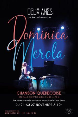 Considérée comme l’une des plus belles voix du Québec, la chanteuse et pianiste montréalaise Dominica Merola se produira au théâtre des 2 Ânes.