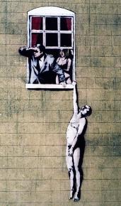 [Visuel : Banksy graffiti on the Bottom of Park Street Bristol.Date 2008-04-07 (original upload date)Source Transferred from en.wikipedia; transferred to Commons by User:Mattbuck using CommonsHelper. Auteur Original uploader was Ajuk at en.wikipedia. Licence Creative Commons paternité – partage à l’identique 3.0 (non transposée)]