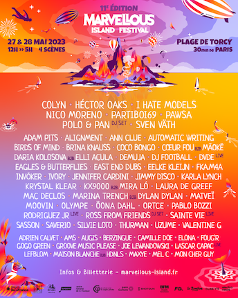 La 11e édition de Marvellous Island se tiendra les 27 & 28 mai 2023, dans sa configuration traditionnelle à savoir de midi jusqu’à cinq heures du matin sur la Plage de Torcy en Seine et Marne.