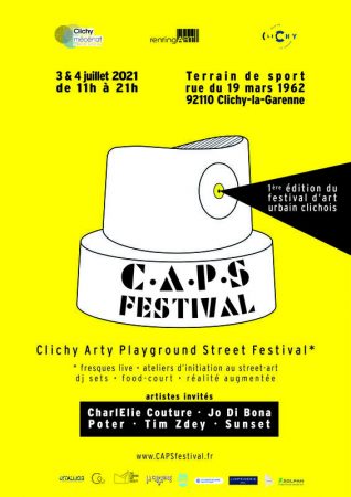 Le week-end du 3 et 4 juillet 2021, l’agence rentingART, en partenariat avec l’association CO42 et la Ville de Clichy, organise un festival artistique d’un nouveau genre : le C.A.P.S festival qui aura lieu sur le terrain de sport de la rue du 19 mars 1962 à l’entrée de Clichy.